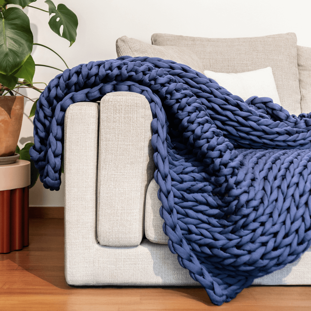 Η Gravity Organic Cotton είναι φτιαγμένη στο χέρι από 100% οργανικό βαμβάκι. Για να της δώσουμε αυτό το καταπραϋντικό βάρος, αναπτύξαμε μια νέα μέθοδο πλέξης, όπου το νήμα είναι χοντρό και περιέχει μέσα το ίδιο ύφασμα σε στρώσεις ώστε να αποκτήσει κάθε νήμα το βάρος που πρέπει. Δεν περιέχει τίποτα άλλο, πέρα από το βαμβακερό ύφασμα.